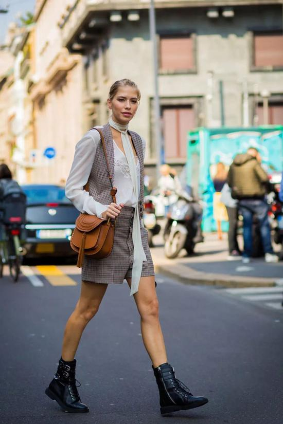首先,欧美明星系丝巾的街拍真的很常见,出门逛个街,买杯咖啡,简简单单的造型用丝巾丰富一下。