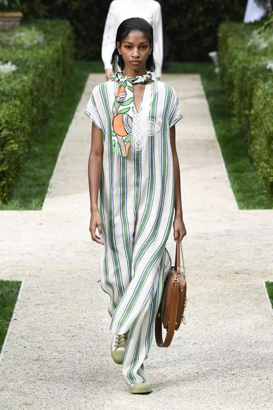 之前说过秀场的Styling一般会更“夸张”一些,越来越多的设计师将丝巾作为元素融入。
