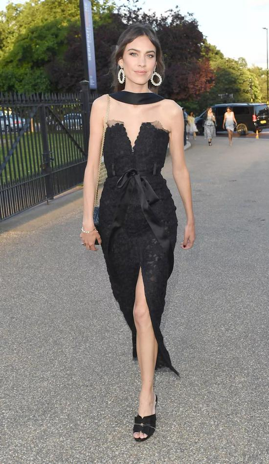 Alexa Chung之前也有过类似的搭配,黑色蕾丝礼服裙+黑色丝巾,恰到好处的性感。
