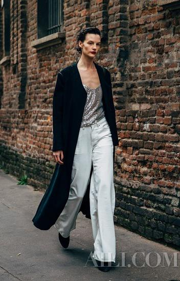 比起紧绷在大腿和小腿上的白色裤子,直筒的白色长裤才更显瘦,硬挺的面料减少紧绷感,流出适合的空间,同事还可以修饰腿部线条,即使腿不够直也能通过笔直的裤型而变得完美。