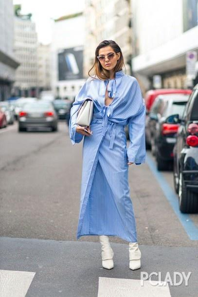 和横条纹相比起来,竖纹的裙装简直就是显瘦神器本人。