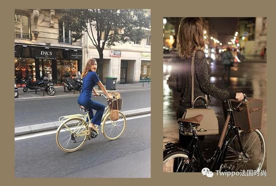 有次在Chatelet逛街,正好碰到她骑着个小复古自行车倏的一下就过去了,穿的就是她平时那个样儿,深v上衣碎花裙,一双大眼睛涂一法式大红唇,在人群里真挺亮眼的。