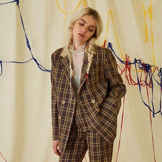 BAO款-SNH48赵粤同款格纹双排扣复古西服