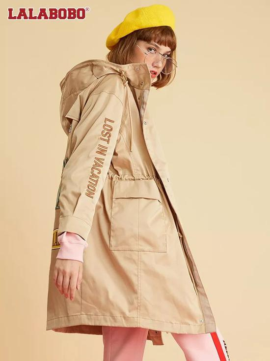 LALABOBO2019秋新品潮流大廓形腰部抽绳连帽单风衣女