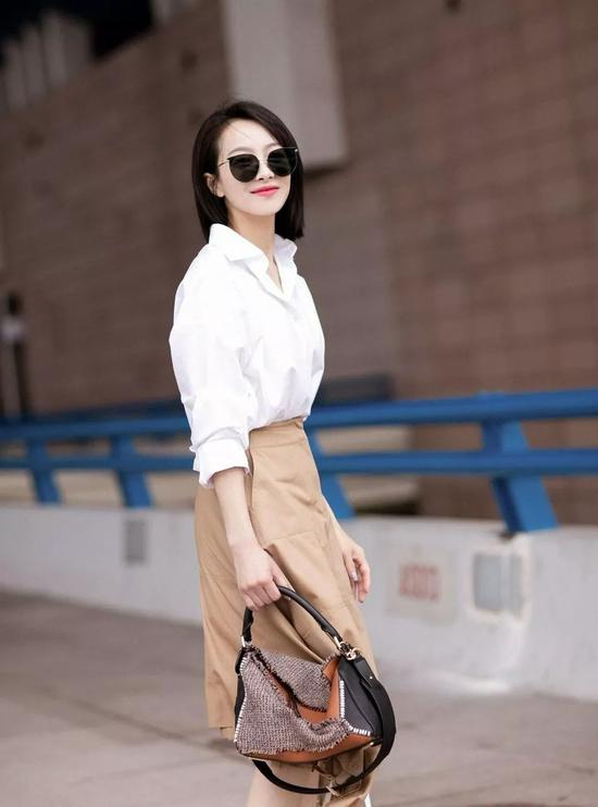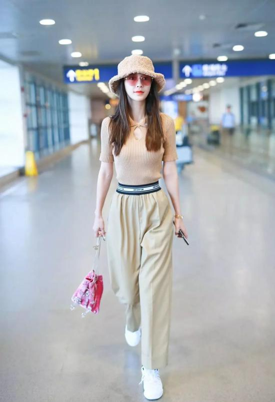驼色给人一种看上去就暖暖的感觉,还不算太冷的季节报友们可以像杨颖一样穿件针织短款。