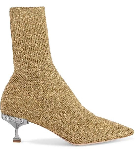 MIU MIU水晶缀饰金属感罗纹针织袜靴