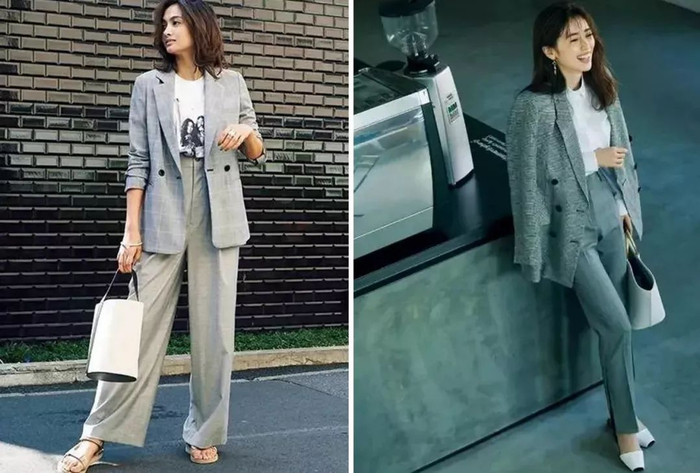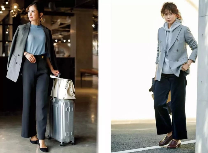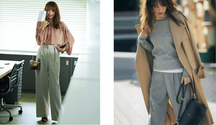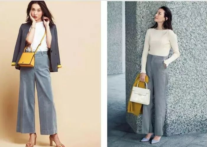 带有一定灰度的阔腿裤,对于穿腻黑色的人们来说,同样温柔大方,且容易驾驭