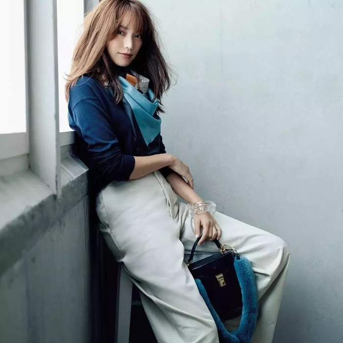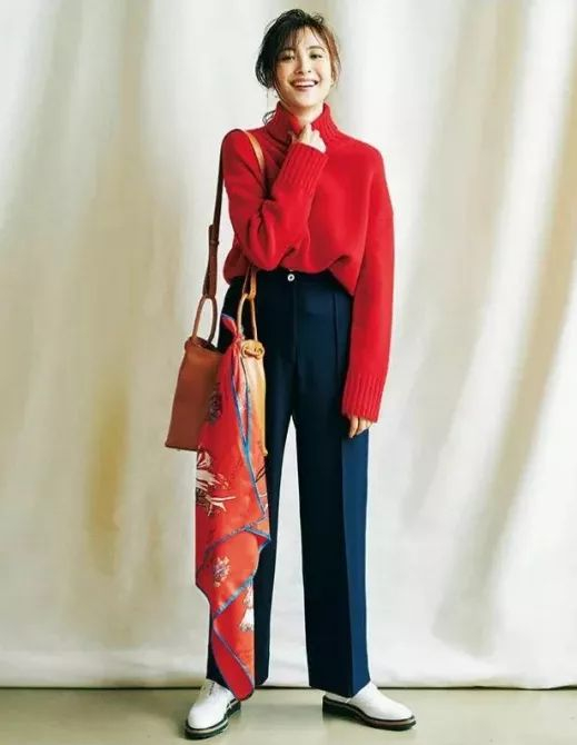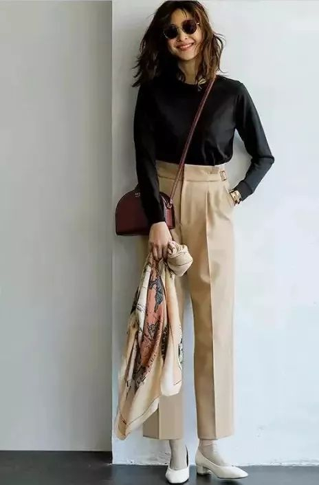 上衣推荐选择浅色,能够令人看起来更有气色,搭配亮眼包包或围巾,优雅又有韵味
