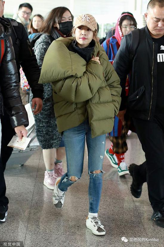 降低面包服的臃肿,你可以果断选择哑光面质地的面包服,如果买衣服不知道选择什么样的颜色,那就请选择黑色,绝对是百搭还不会出错的颜色。像张予曦这样,全身特工颜色all black的造型,超级显瘦有没有!