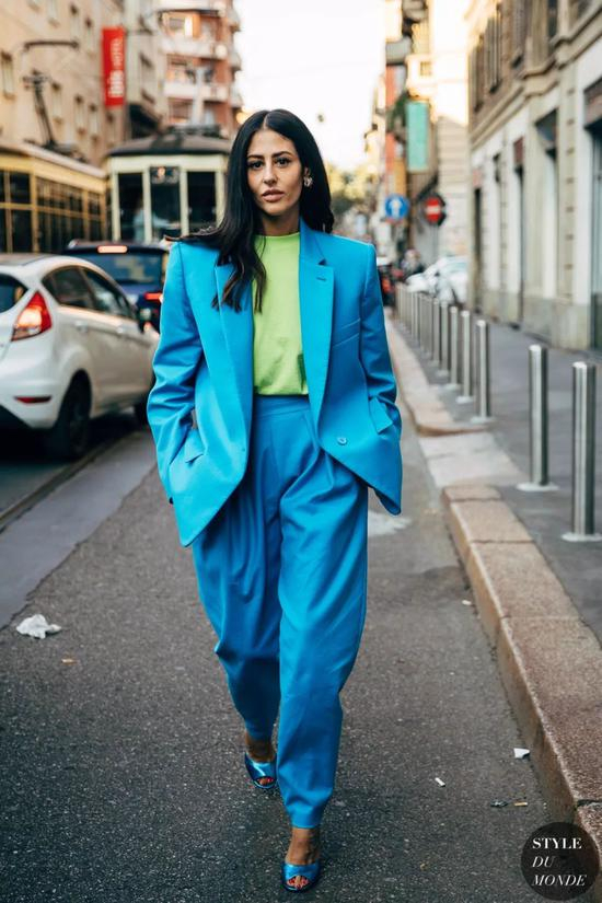 穿衣再大胆点儿的姑娘可以像设计师Gilda Ambrosio一样用蓝色撞着穿,编辑实在太喜欢Gilda 身上那种,意大利女人的时髦和精致,而且从来不畏首畏尾,藏着掖着,老娘就是美,就是敢穿,反正老娘驾驭的住。