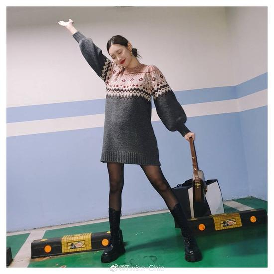刚剪了齐刘海的昆凌则是用漆皮面厚底靴彰显个性,真是个又甜又酷的小姐姐。