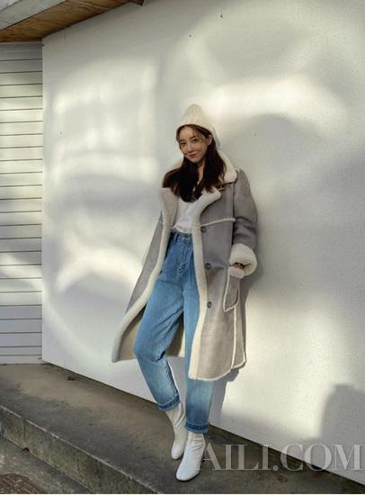 皮毛一体的羊羔毛外套经典又实用,每个女生都值得如一件,保暖程度上也丝毫不输。基础款羊羔绒夹克简约百搭,完全可以和男友配情侣款。