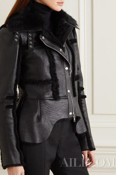ALEXANDER MCQUEEN 羊毛皮边饰皮革机车夹克