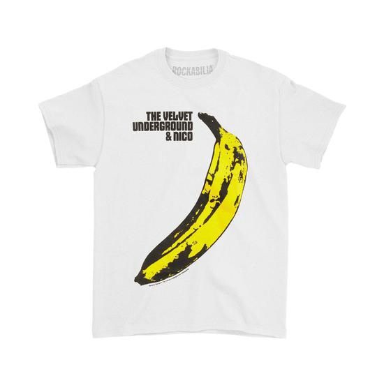 于是乐队 T 恤诞生,并引发了广泛热潮。诸如 The Rolling Stones 的‘Tongue and Lips’、The Beatles 的复古字母,Pink Floyd 的棱镜、Andy Warhol 为 The Velvet Underground 绘制的那张香蕉封面、The Ramones 包含乐队成员名字的 Logo…数不清的乐队图案成为了时代经典,即使在今天也仍能看见它们被印在各式各样的衣服上。