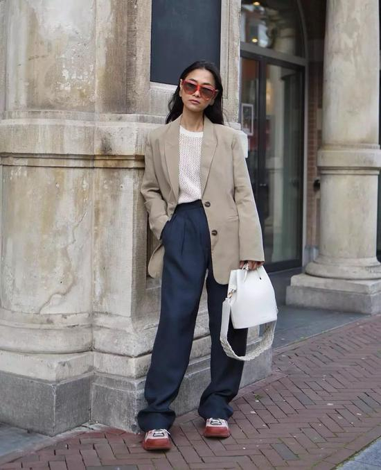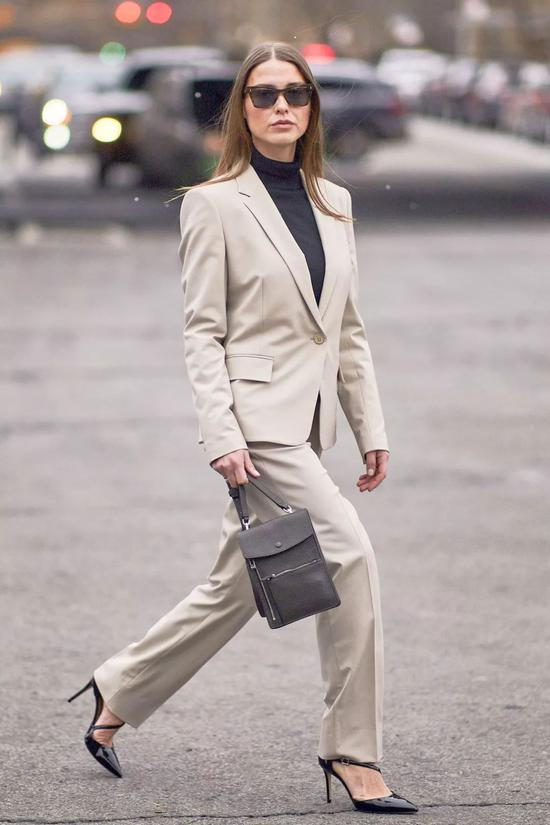 这里要小小的注意一下的就是不同单品的风格统一,整套的单品搭在一起,才能既高级又时髦~