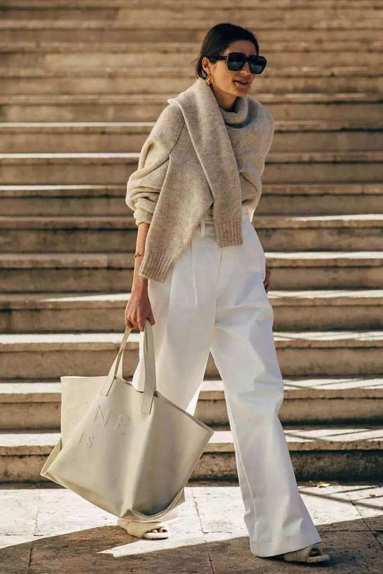 尤其是燕麦色的毛衣搭一条,设计简单的白色长裤,看上去是不是特顺眼?