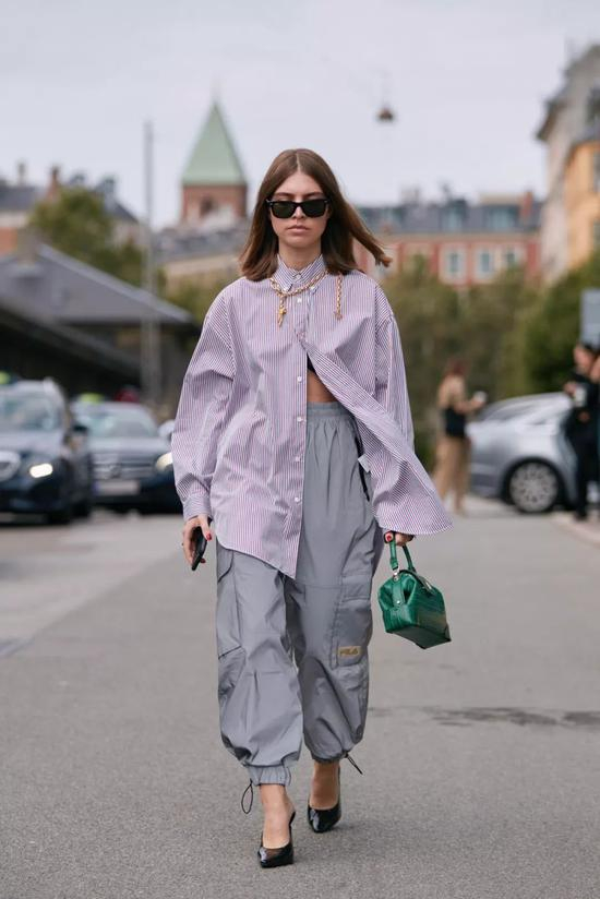 今年流行的工装裤,束脚的更显瘦~搭配上还多了个选项,意外的和高跟鞋很“般配”。