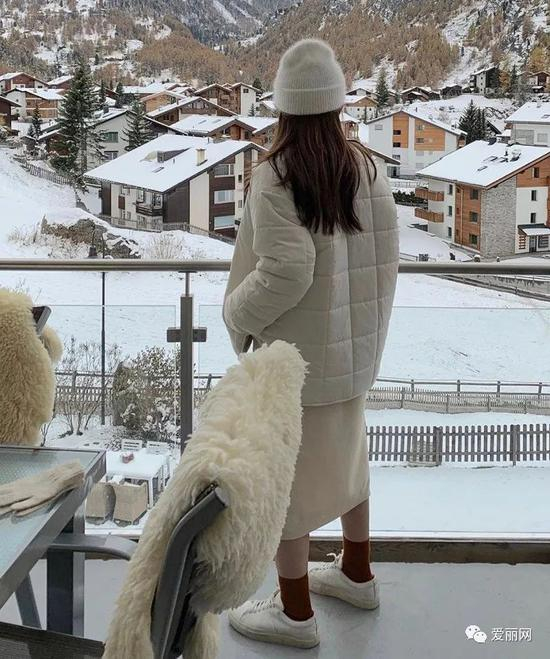 如果想要少女感造型,白色羽绒服还是最有话语权。不需要复杂的细节,昂贵的面料,只是因为白色就足够纯净了。