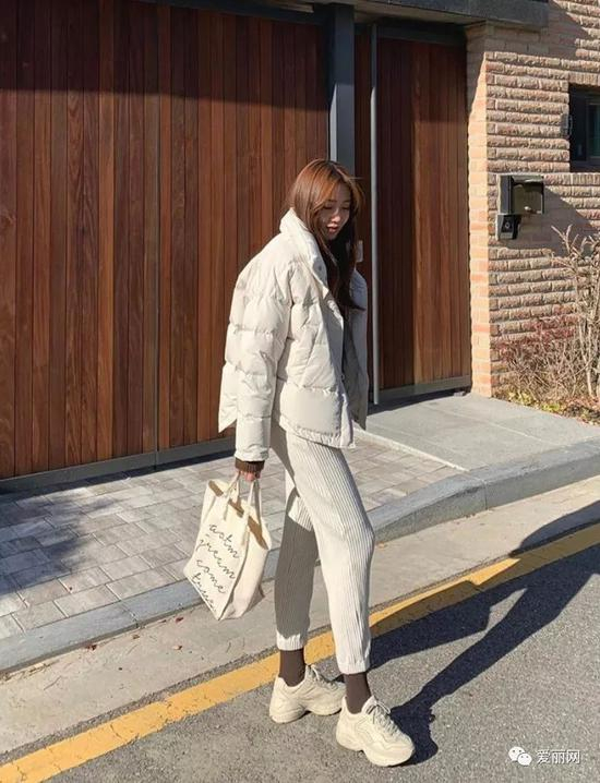 一身浅色系与白色羽绒服搭配最为合适,轻轻松松营造温柔优雅的冬日造型,就像韩剧里走出的女主角,不用说话就足够让人心动。搭配羽绒服其他单品的选择不要过于复杂,简单才是正解。