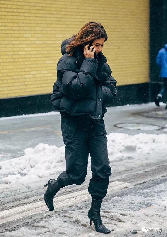 短款羽绒服很适合日常在家、地铁和办公室之间切换,在户外的时间不长,短款的保暖性能足够。比起包到脚踝的羽绒服,短款的更加利落,想成就怎么样的风格,下半身的裙装或者裤装起到了很关键的作用,将黑色萝卜裤的裤脚塞进短靴,是走路生风的女强人,谁说羽绒服会缺少气场。
