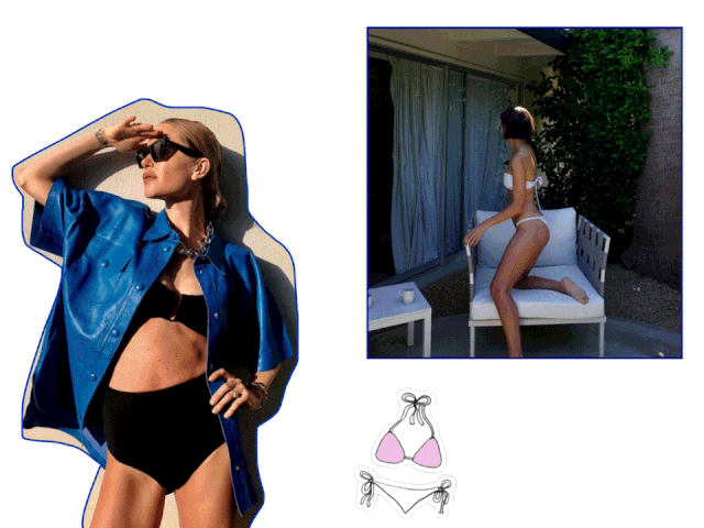 划重点,你从某宝上买的荷叶边蝴蝶结款式赶紧扔掉,今年流行简洁款式,腰部没有赘肉的小腰精就选择两件式biniki,胳膊和肩背上有肉的姐妹可以披上一件衬衫嗷~