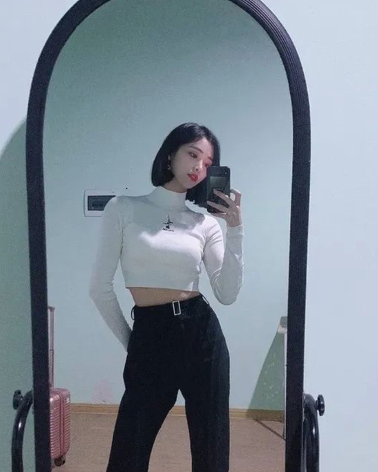 作为dancer小公主,孔雪儿的腰也是致命武器。她的私服中短款top搭配工装裤很常见,腰精本精在此。