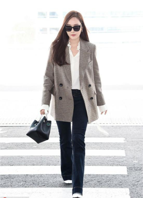 首先说到格纹单品,第一个不能错过的当然还是要数格纹外。钠,最常见的就是郑秀妍的这种细格纹西装了,很经典耐穿又好搭,搭配一条高腰裤,穿出大长腿get!