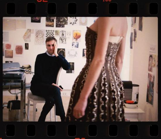 早在Raf Simons执掌的首个Christian Dior高定系列中,就将艺术家Sterling Ruby的喷漆作品融入设计,用精致的刺绣把渐变色调一针一针化成礼服上的印花图案。
