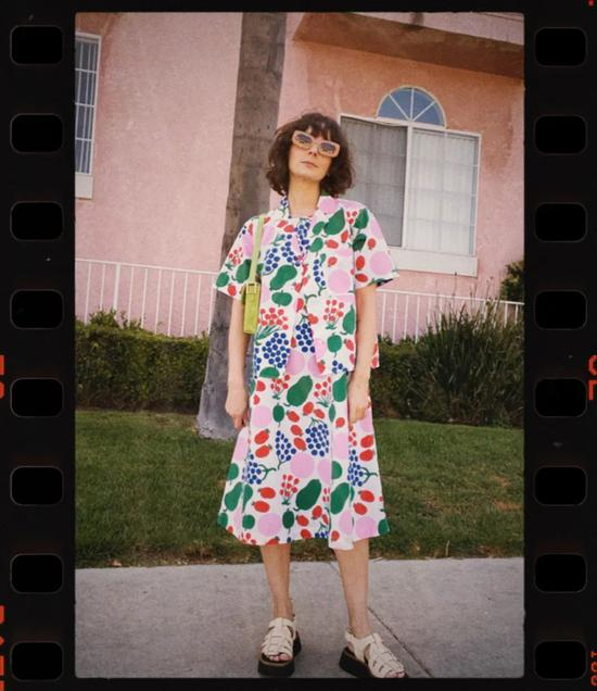 初夏的明媚轻盈与美术馆的艺术气息,让人立马联想到浪漫的碎花连衣裙。花鸟印花雅致清新,交叉细带又带有一丝性感。