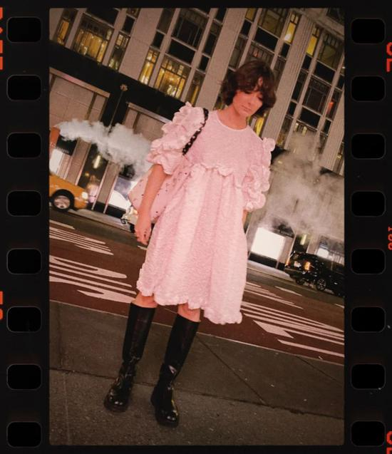 繁复的花边和蓬松的版型少不了,不想过分甜腻的话还可以用冷静的黑色中和一下。