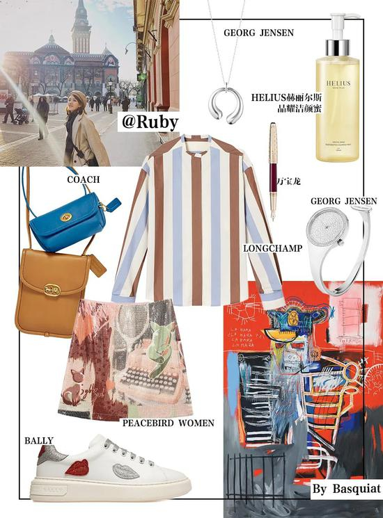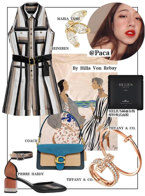 我选的是国内设计师Reineren一条条纹连体裤,因为本身就很有设计感,所以在包包和鞋子的选择上就做了减法,选择了相对简单清爽的款式。