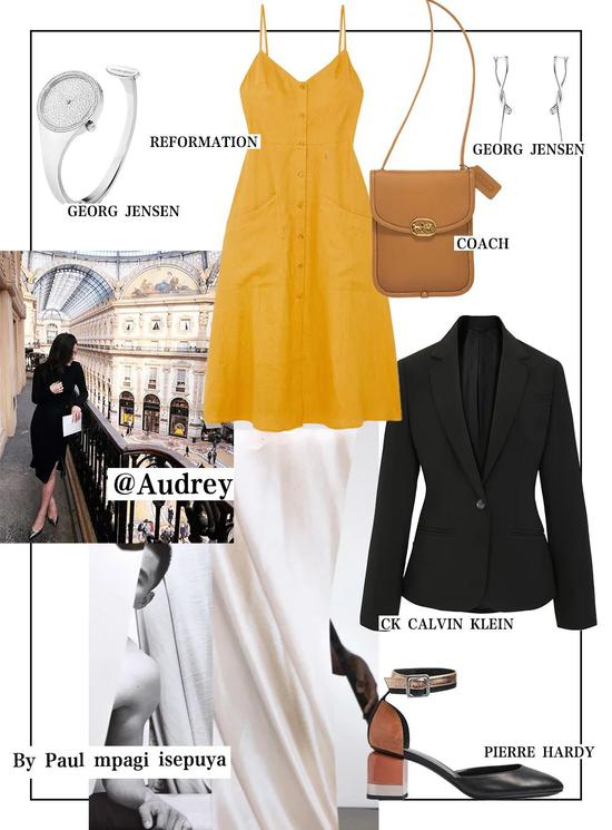 黑色的西装外套绝对是必备单品之一,里面搭配一件亮黄色的洋装可以让西装外套显得不会过于正式及拘谨。