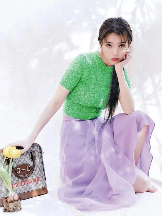 杨幂和IU都很喜欢的这款柠檬绿上衣来自 Gucci,无论顺色穿还是撞色穿都很出彩。