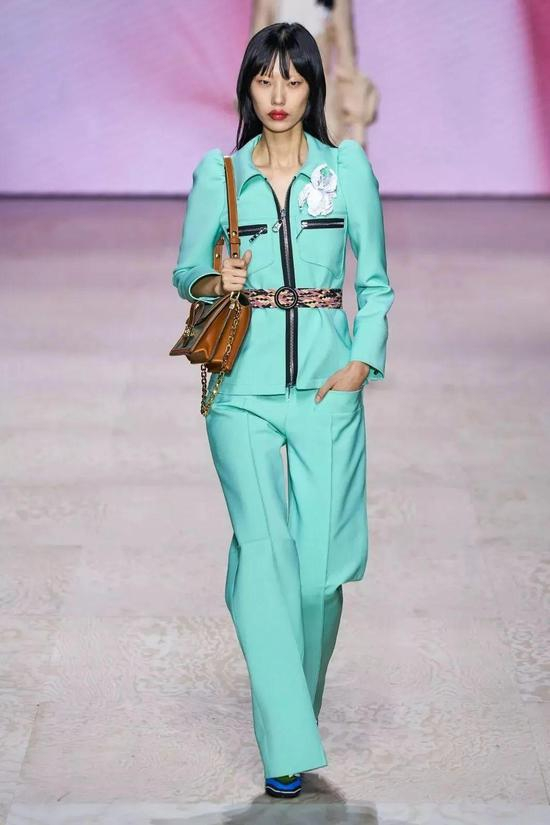 比如用来出席正式场合的西装,单看剪裁和设计会显得很正经,但是有了薄荷绿的加持,立马变得轻快又时髦。