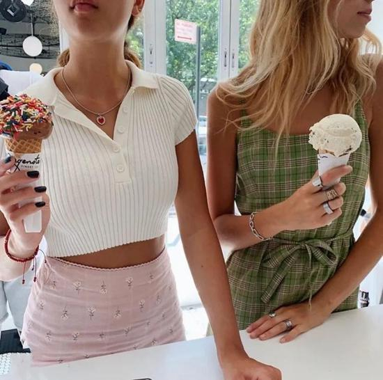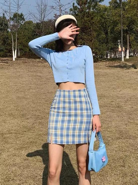 crop top加高腰短裙的搭配不仅在视觉上能显瘦,大🐻妹子也能更好地凸显身材优势。