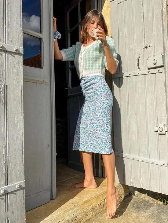 但这种软面料的小碎花款式会比较容易踩雷,穿不好就像孕妇装。