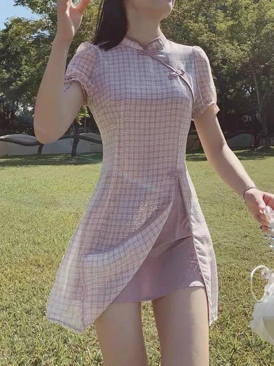 想来点特别的款式还可以挑这种改良旗袍,对梨型身材也很友好,但短脖子的姐妹还是不要考虑了。