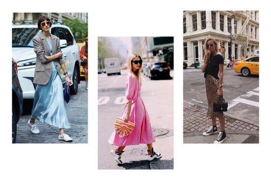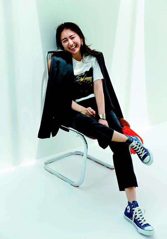 小物也大胆地选择休闲款,摩登的运动鞋点缀复古风穿搭。