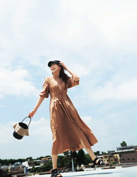 (右)酷辣卡其色为主角,夏季小物统一成大地色。稳重颜色让休闲装也显得很成熟。