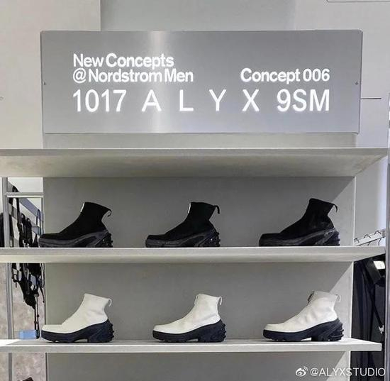 这样的背景之下,1017 ALYX 9SM机能靴自然也跟着设计师的名气水涨船高。1017 ALYX 9SM最有名的一双靴子莫过于和Vibram合作推出的拼接款,Vibram是意大利著名的橡胶生产厂商,专门为鞋底设计的橡胶以出色的耐磨性、良好的防滑性、均匀的质地获得世界众多制鞋厂商的认可。