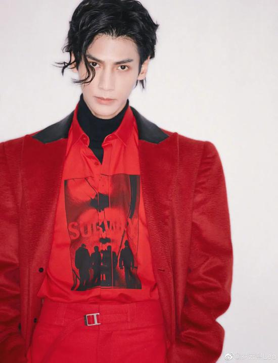罗云熙将纯黑色高领毛衣作内搭,与红衬衫叠穿吸睛度给满分。领口长度恰到好处,勾勒出他完美的颈线。红与黑的交融更是将他“贵气”的一面展现到了极致。