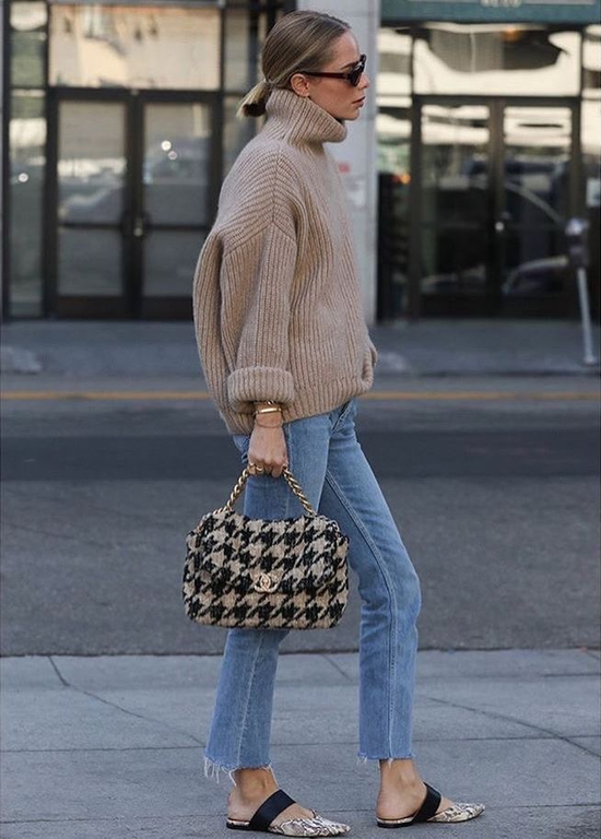 高领毛衣是寒冷天气里的贴心存在,在保暖脖颈的同时也能彰显气质,何乐而不为呢。新手玩家建议选择包容性较强的宽松版型,再与牛仔裤搭配,给人以恰到好处的舒适感。