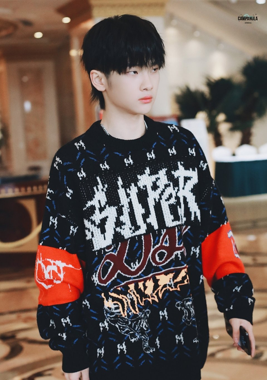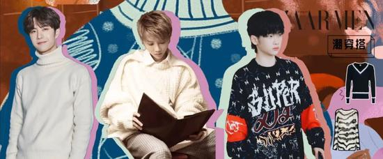 而另一边周震南选择的是黑色拼接印花毛衣,衣袖处独特的撞色设计为整体创造了更多看点,不愧是时尚感满分的南南。