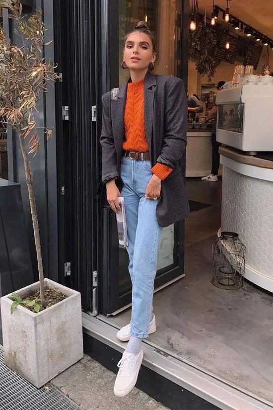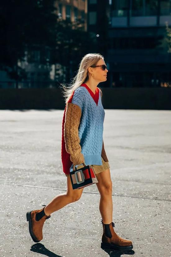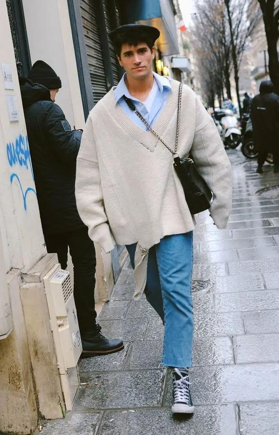 不喜欢简洁风的玩家看这里,一件色彩鲜艳的oversize款v领毛衣足以满足你。再选择一款同色系配饰作呼应,既能达到视觉上的和谐统一,又可以很好地起到点睛作用。