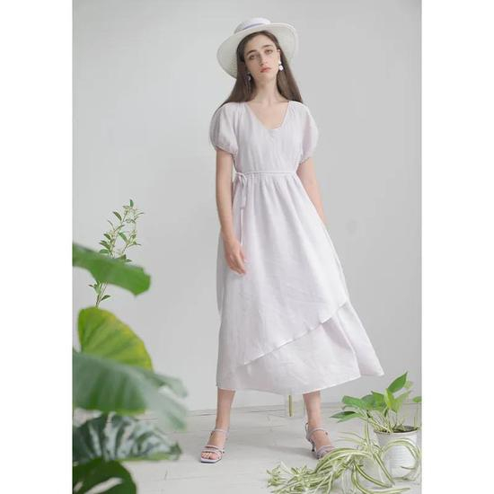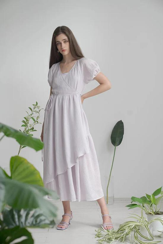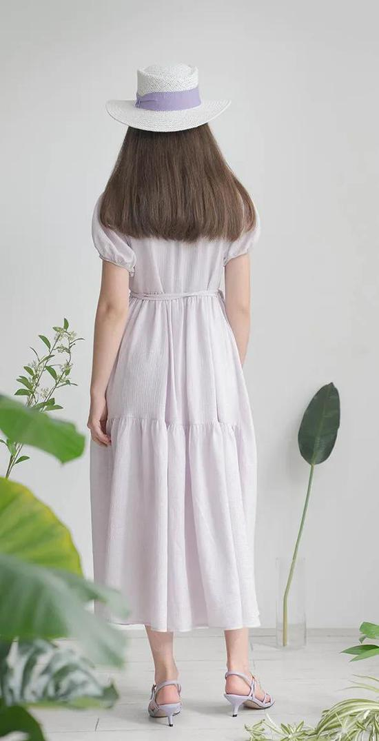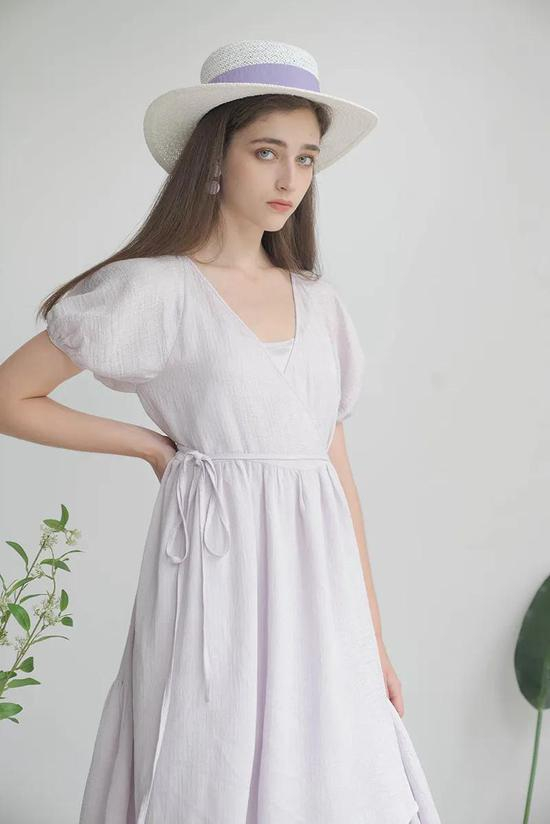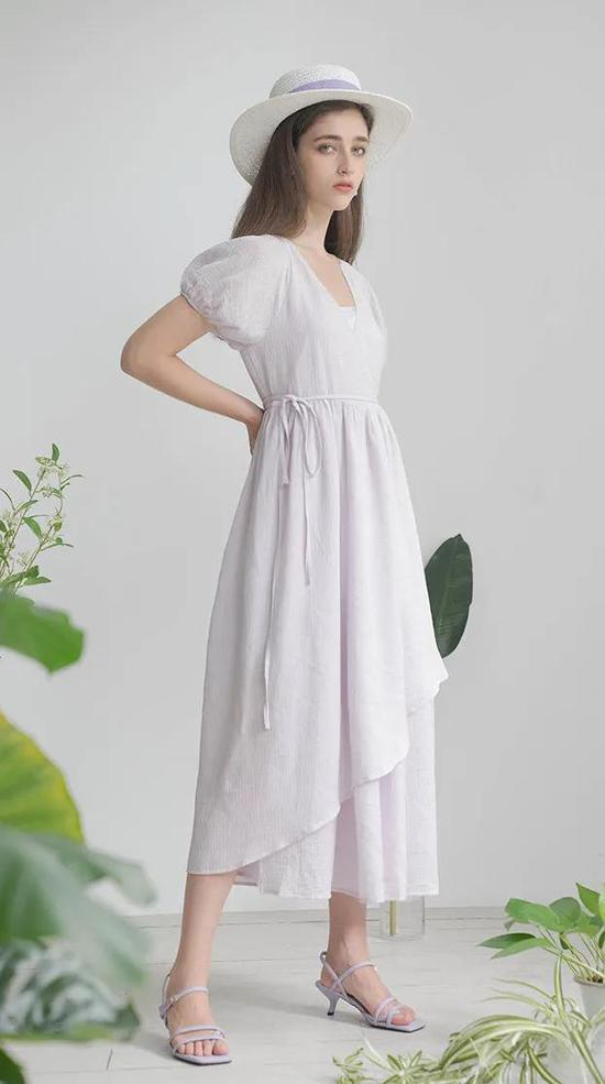 甜美梦幻的香芋紫连衣裙,不对称的围裹款式仙气飘飘,穿上就透露着满满的少女心。