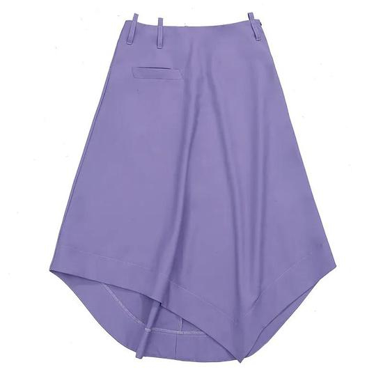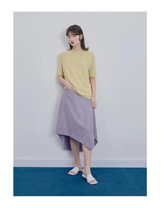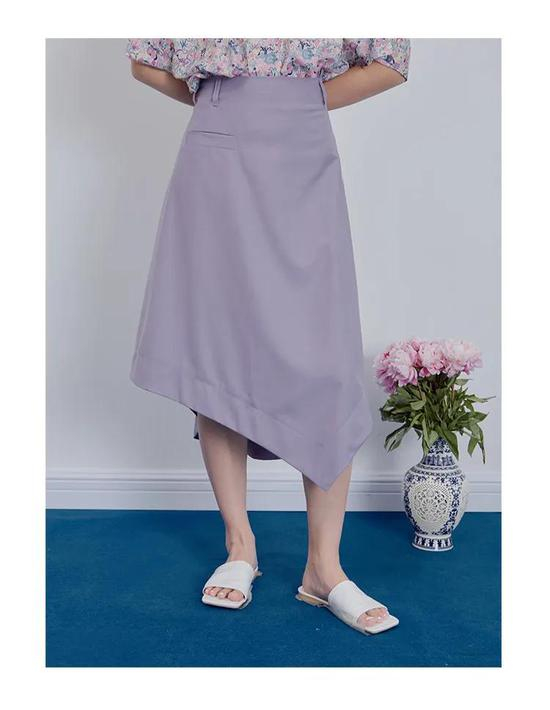 有耳这款半裙不是带有飘逸感那种,而是更加挺括的版型,A字款式加上不规则裙摆,对于下半身肉肉的女生也非常友好。