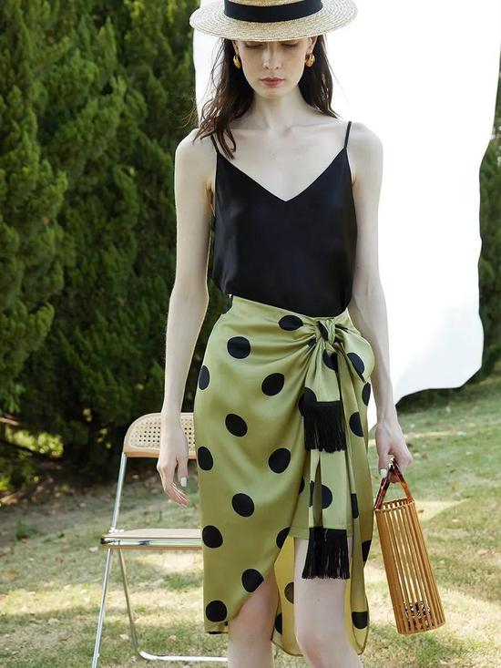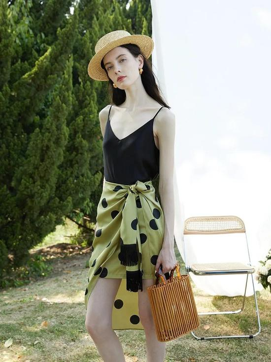 有点小性感又有点可爱,搭配吊带、T恤或者衬衫都会不错。夏季必备的绿色波点,清新又复古,杏色波点更温和经典,充满温柔气质,两个颜色都不会出错。