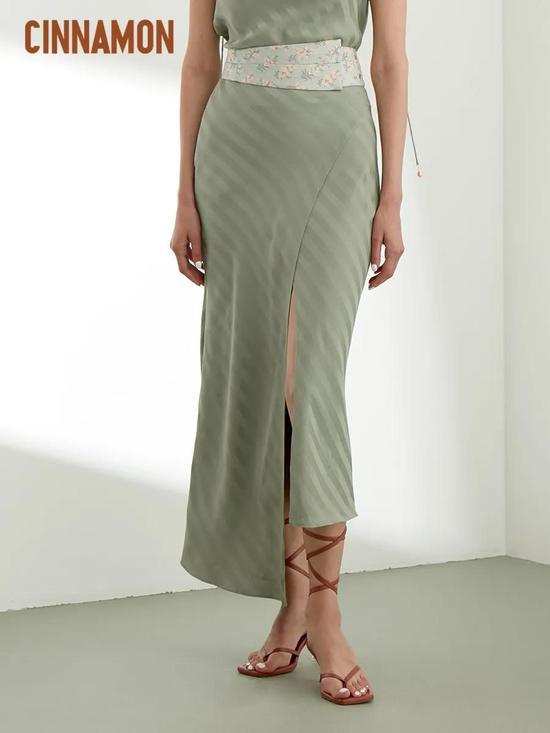 高腰设计、不紧身的包臀款式,对身材包容度高,行走间暗藏小心机,不规则下摆,高低错落有致。