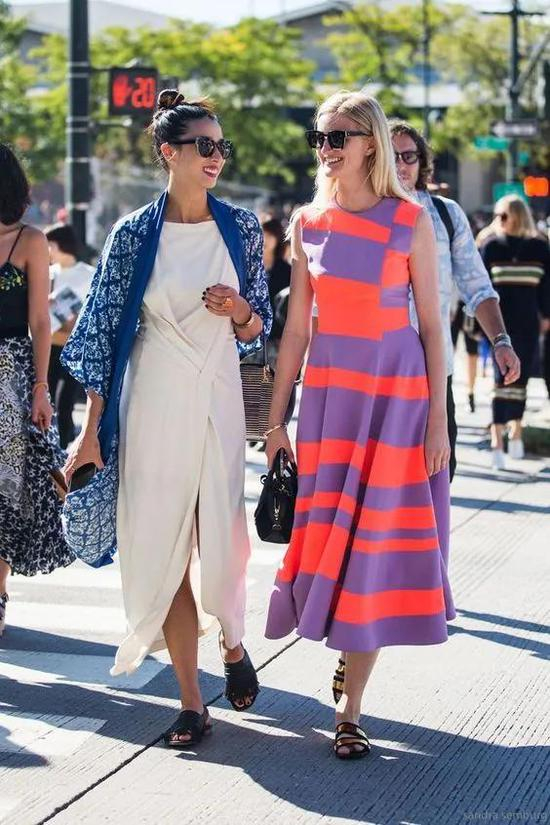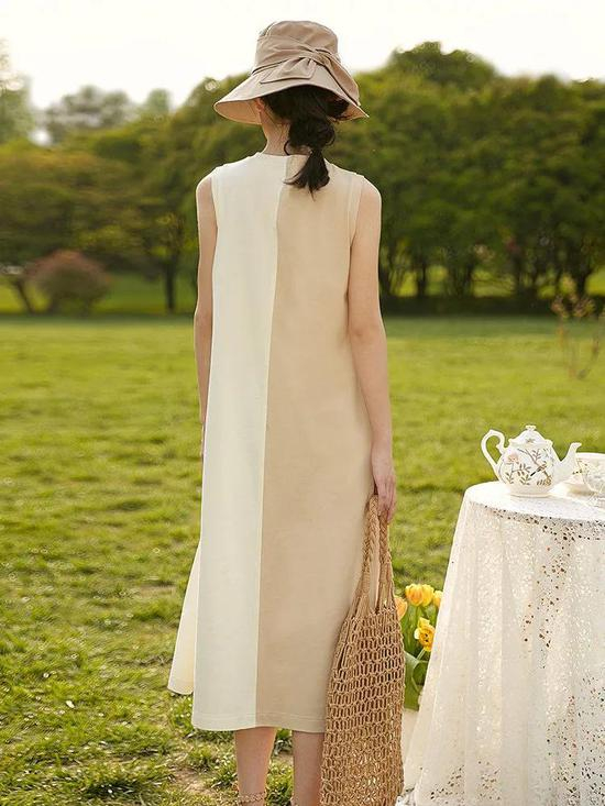 对于拼色连衣裙,如果饱和度很高的艳丽颜色的确会没那么日常。
