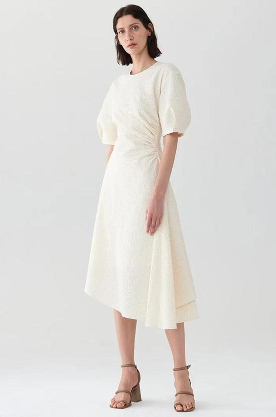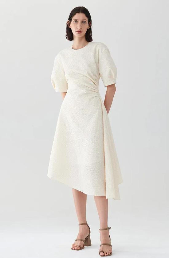 造型感最强的不对称的服饰,还是要看细节之处的精巧设计。褶皱拉绳或是松紧带的运用,极具辨识度,是时髦精大爱的款式之一。